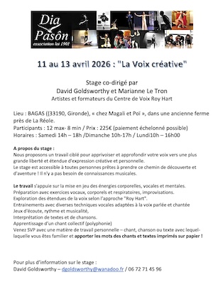11 au 13 avril a BAGAS en Gironde: La voix créative